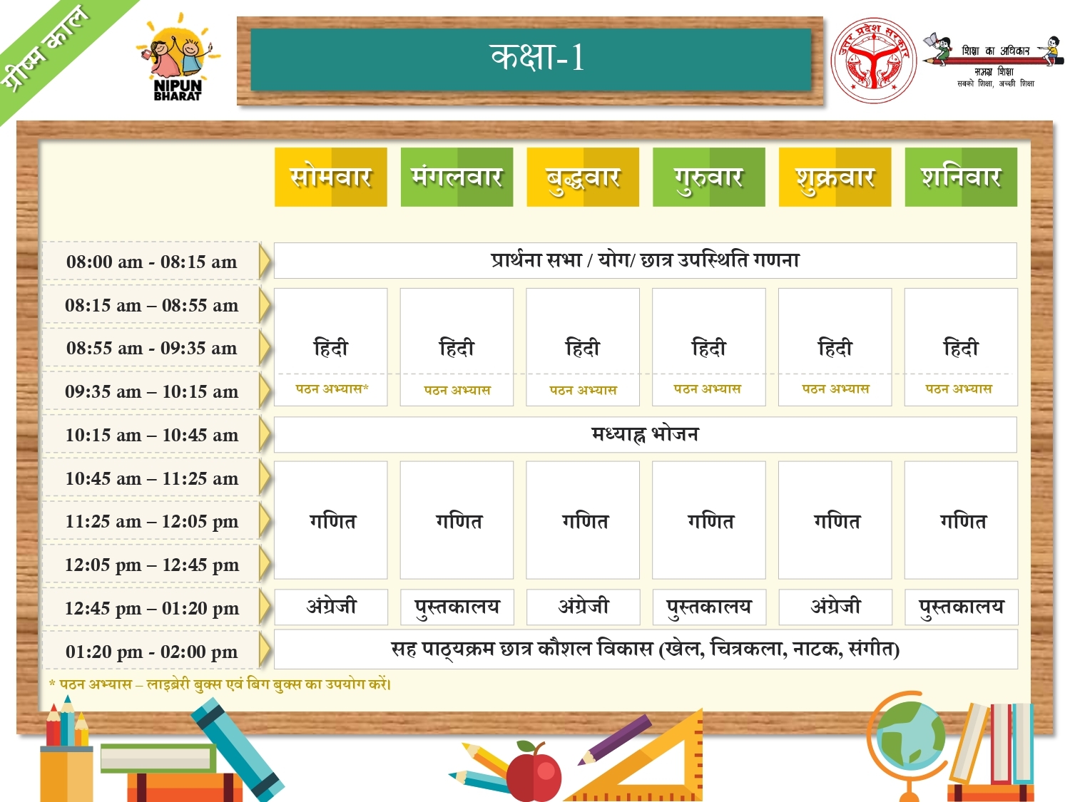 ग्रीष्मकालीन समय सारणी (प्राथमिक स्तर)