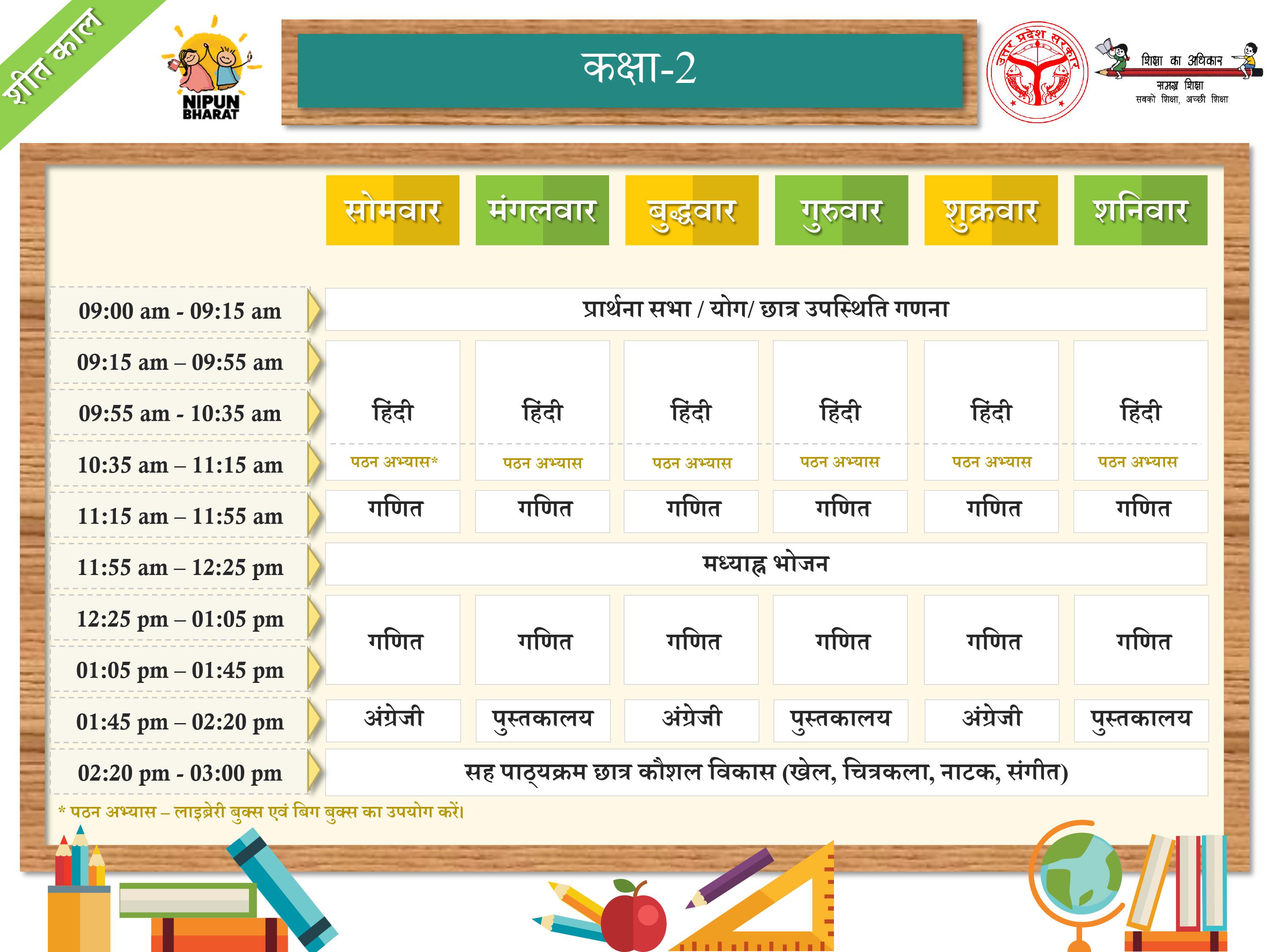 शीतकालीन समय सारणी (प्राथमिक स्तर)